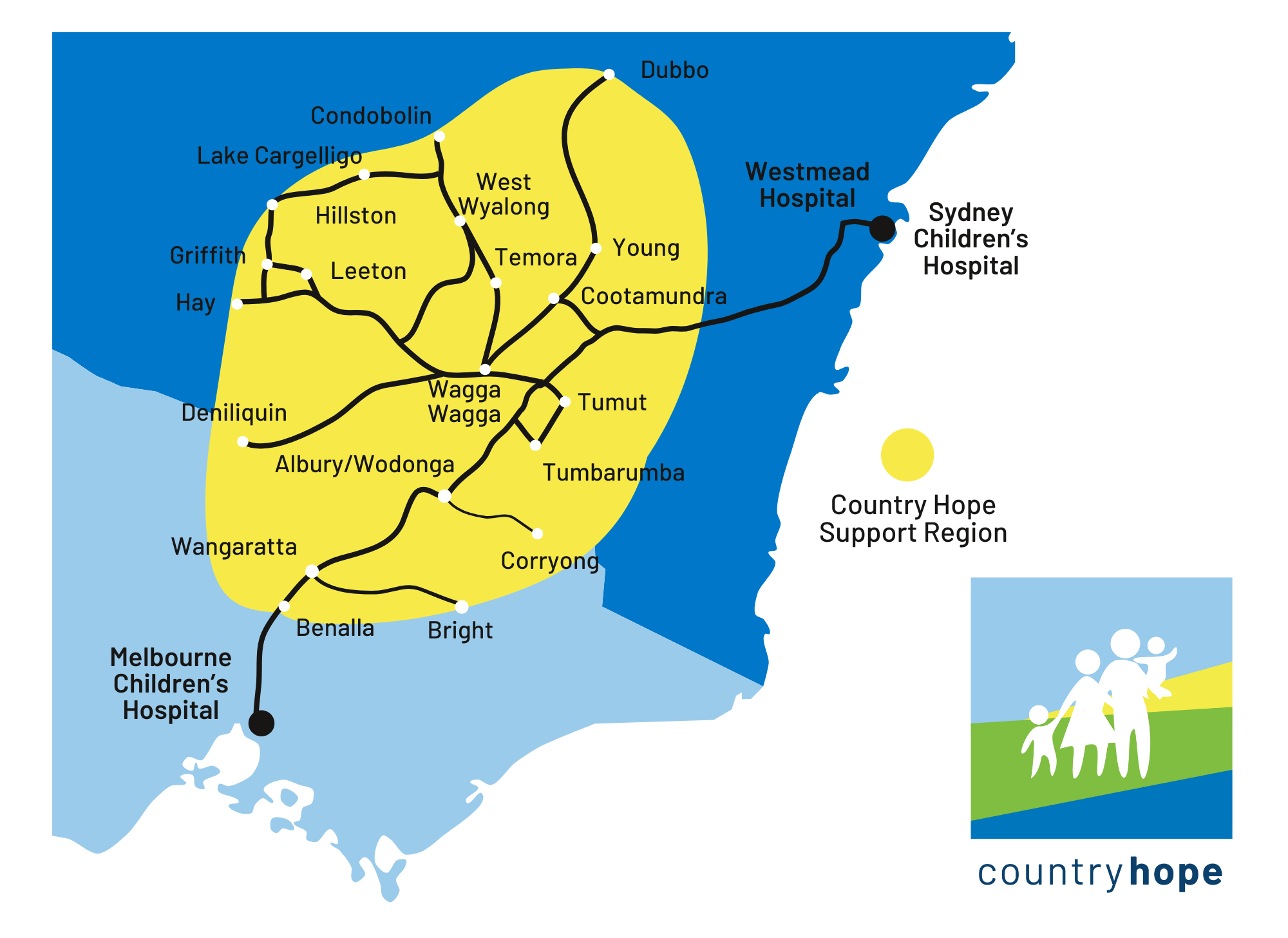 Country Hope’s reach and impact spans across regional New South Wales and Victoria, with offices and/or staff located in the key hubs of Wagga Wagga, Griffith, Dubbo and Albury/Wodonga.